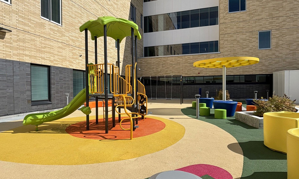 Le Pavillon Enfant Soleil a été conçu pour offrir un environnement humain, lumineux et réconfortant, pour les enfants et leurs familles vivant des moments difficiles. Le don exceptionnel de la Famille Daniel Beaucage a permis l’aménagement d’une cour extérieure thérapeutique en pédopsychiatrie, un espace sécurisé extérieur qui répond à un besoin important pour les jeunes vivant avec des troubles de santé mentale, comme l’anxiété, les troubles alimentaires ou la dépression. Ces derniers pourront maintenant profiter d’un endroit pour bouger, jouer et socialiser.