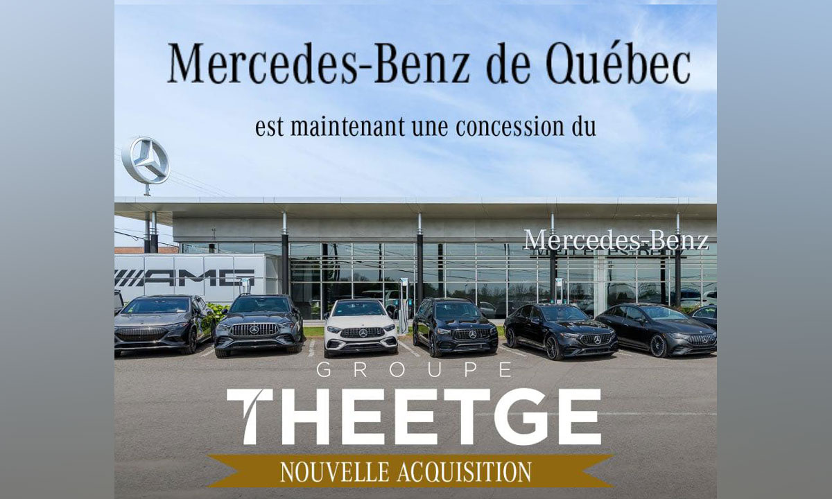 Le Groupe Theetge, important regroupement de concessions automobiles dans la région de Québec, vient d’officialiser une toute nouvelle transaction, soit l’acquisition de Mercedes-Benz de Québec.